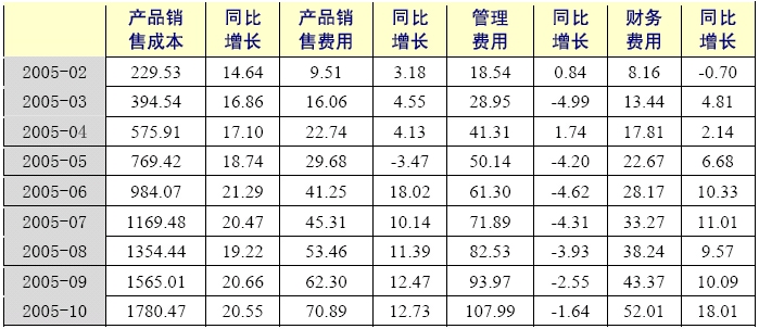 2005年以來水泥制造業(yè)累計(jì)產(chǎn)品銷售成本及費(fèi)用情況