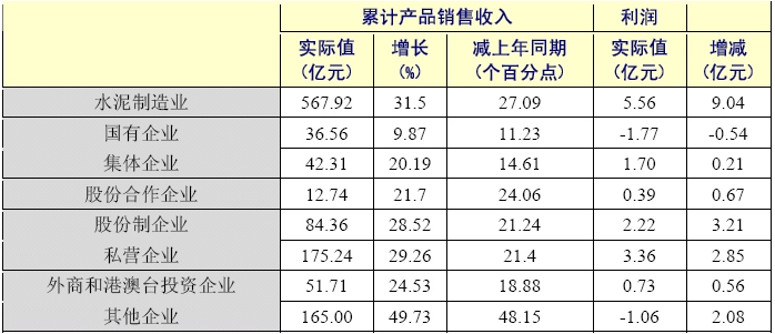私營企業(yè)累計產(chǎn)品銷售收入為175.24億元,占全行業(yè)的30.86%,同比增長29.26%,比上年同期上升了21.4個百分點;利潤為3.36億元,占全行業(yè)的60.37%,同比增長570.04%,經(jīng)濟效益增長最好。
