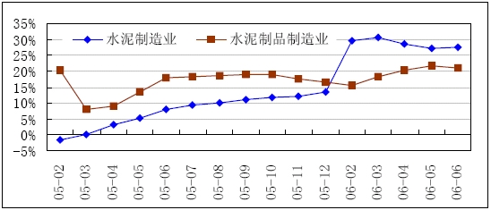 2006年1-6月,水泥制品制造業(yè)累計(jì)工業(yè)總產(chǎn)值為463.84億元,同比增長(zhǎng)20.97%,增幅比上年同期上升3.07個(gè)百分點(diǎn);實(shí)現(xiàn)產(chǎn)品銷售收入427.52億元,同比增長(zhǎng)22.86%,增幅比上年同期上升6.19個(gè)百分點(diǎn)。