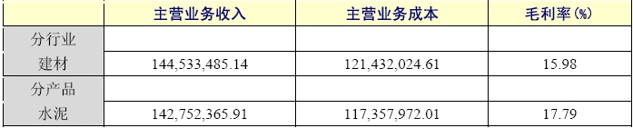 2006年1-9月巢東水泥主營行業(yè)或產(chǎn)品情況