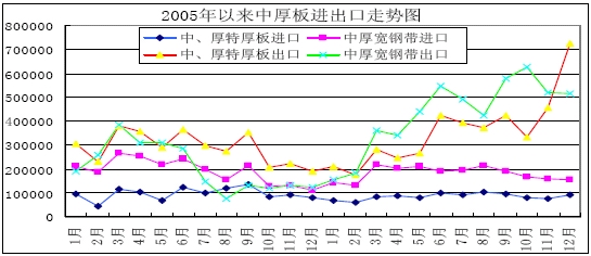 2005-2006年中厚板進出口走勢