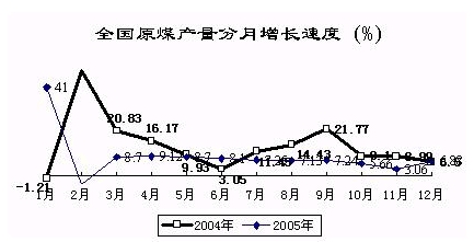 2005年,在國家宏觀經(jīng)濟(jì)調(diào)控作用下,煤電油運(yùn)供求矛盾有所緩解,但在國民經(jīng)濟(jì)整體快速增長的帶動(dòng)下,全國煤炭工業(yè)繼續(xù)保持平穩(wěn)快速增長。主要煤炭消費(fèi)行業(yè)增長速度雖較2004年有所放緩,但生產(chǎn)繼續(xù)保持平穩(wěn)較快增長,推動(dòng)煤炭需求增加。煤炭行業(yè)共同努力,挖掘潛力,保證市場供應(yīng),煤炭產(chǎn)量和銷量雙雙首次突破20億噸大關(guān),創(chuàng)歷史最高水平。