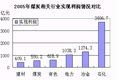 2005年,全國規(guī)模以上煤炭企業(yè)補(bǔ)貼后實(shí)現(xiàn)利潤總額550.2億元,占全國規(guī)模以上工業(yè)利潤的3.83%,同比增長78.6%,增幅同比下降了38個(gè)百分點(diǎn)。全國規(guī)模以上煤炭企業(yè)成本費(fèi)用利潤率10.9%,同比提高2.33個(gè)百分點(diǎn)。原中央財(cái)政煤炭企業(yè)補(bǔ)貼后盈利148.3億元,同比增加68.7億元,增長86.3%。
