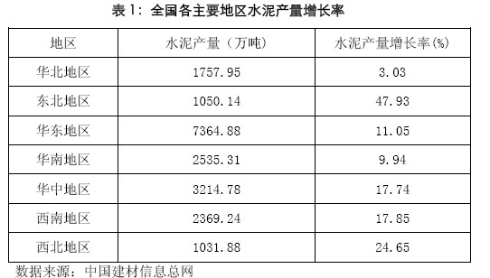 2007年1-3月我國共生產(chǎn)水泥熟料19324.18萬噸,比去年同期增長了14.54%。省市產(chǎn)量排在前五位的依次為山東省、廣東省、安徽省、江蘇省、浙江;增長最快的五個省分別是:寧夏回族自治區(qū)、吉林省、甘肅省、遼寧省、福建省,同比增長率分別達到102.68%、59.94%、42.84%、41.40%和35.54%。相對而言,東北地區(qū)的產(chǎn)量增長較快,同比增幅達47.93%。