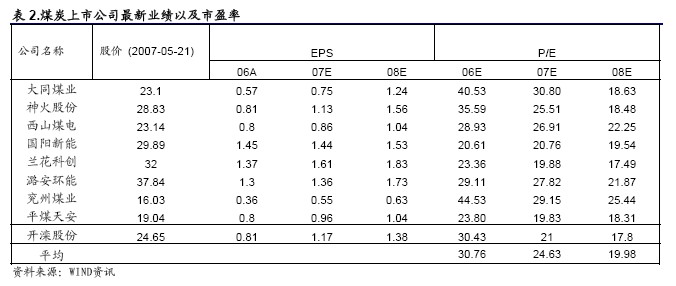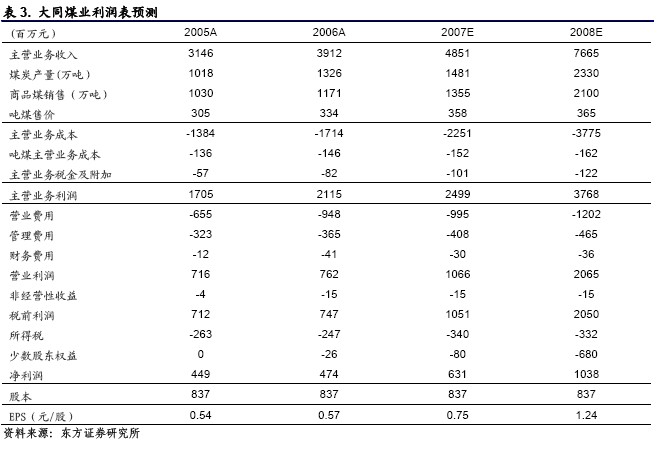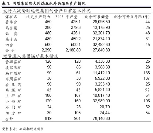 2006 年公司的年報(bào)指出,公司未來的資源獲取以及上市公司的發(fā)展戰(zhàn)略進(jìn)一步明確。一是通過境外上市及境內(nèi)增發(fā)融資,收購(gòu)整合煤炭資源和開發(fā)新煤礦并舉的形式,實(shí)現(xiàn)公司的產(chǎn)能擴(kuò)張。同煤集團(tuán)十一五規(guī)劃的產(chǎn)能是1.5 億噸。2014 年前會(huì)全部放進(jìn)上市公司,大同煤業(yè)將是同煤集團(tuán)下屬企業(yè)中唯一經(jīng)營(yíng)煤炭采選業(yè)務(wù)的經(jīng)營(yíng)主體。公司成長(zhǎng)性日顯突出。云崗礦是集團(tuán)下屬礦井中質(zhì)地較好的礦井,剩余可采儲(chǔ)量3.22億噸,可采年限48 年,盡管公司此次收購(gòu)的云崗礦界內(nèi)的煤田規(guī)模不大。我們預(yù)期更大規(guī)模的收購(gòu)資產(chǎn)可能會(huì)在公司發(fā)行港股的時(shí)候?qū)嵤?BR> 公司將發(fā)行港股的計(jì)劃,與我們前期所了解到的情況以及前期跟蹤報(bào)告《大同煤業(yè)-發(fā)行港股或可加速公司成長(zhǎng)》所述相符。發(fā)行港股所籌資金將用于收購(gòu)集團(tuán)資產(chǎn)。目前同煤集團(tuán)晉華宮礦、馬脊梁礦、云崗礦、燕子山礦、四臺(tái)礦、精煤公司等相關(guān)的全部經(jīng)營(yíng)性資產(chǎn)和同煤集團(tuán)擁有52.44%股權(quán)的軒崗煤電都委托大同煤業(yè)進(jìn)行經(jīng)營(yíng)管理。公司如果發(fā)行H 股,有望收購(gòu)上述資產(chǎn),煤炭產(chǎn)量有望在2006 年1326 萬噸的基礎(chǔ)上增長(zhǎng)2670 萬噸左右。