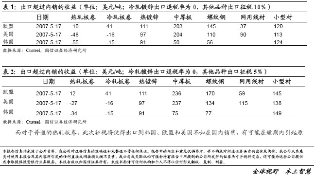 自2007 年6 月1 日起,我國將調(diào)整部分鋼鐵產(chǎn)品進(jìn)出口關(guān)稅稅率。此次調(diào)整將對142 項商品加征出口關(guān)稅。其中重點是對80 多種鋼鐵產(chǎn)品進(jìn)一步加征5-10%的出口關(guān)稅,這些產(chǎn)品主要包括普碳鋼線材、板材、型材以及其它鋼材產(chǎn)品。另外,將去年已經(jīng)征收出口關(guān)稅的鋼坯、鋼錠、生鐵等鋼鐵初級產(chǎn)品的稅率由10%提高至15%。