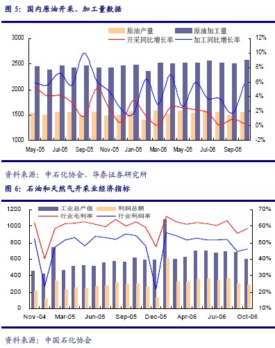 2006 年1-10 月,我國累計生產(chǎn)原油15337 萬噸,原油加工量為25052