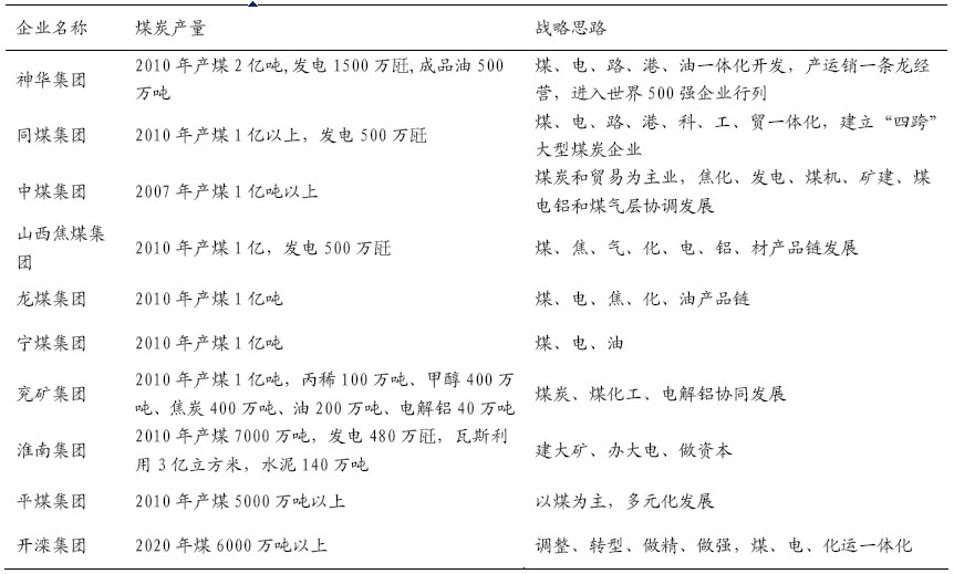 2010年國內(nèi)大型煤炭集團(tuán)公司發(fā)展規(guī)劃