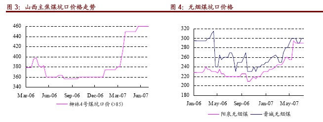 7 月20 日,柳林四號煤坑口不含稅價(jià)格為460 元/噸,近兩個(gè)月維持穩(wěn)定,但較3 月底上漲了50元/噸,較去年年底上漲了100 元/噸。