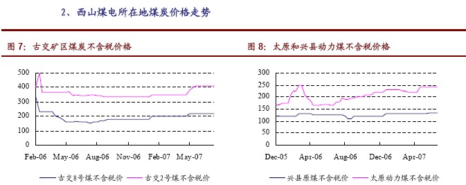 07上半年十大煤炭上市公司所在地煤價走勢(1):大同煤業(yè) 西山煤電
