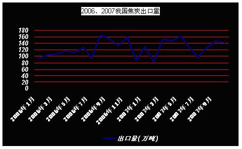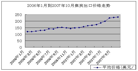 在焦炭出口的價(jià)格方面,從2006年以來(lái),焦炭的出口價(jià)格一直保持了穩(wěn)定的增長(zhǎng)勢(shì)頭。從下圖中可以看出,在近期,即2007年8月焦炭的價(jià)格有了一個(gè)比較大的提升,從前幾個(gè)月的幾美元、十幾煤炭的上漲幅度,激增到8月份二十多美元的上調(diào),而且在出口量上8月份也是我國(guó)出口大量增加的拐點(diǎn),這反映出國(guó)際市場(chǎng)對(duì)中國(guó)焦炭的依賴(lài)程度加深。