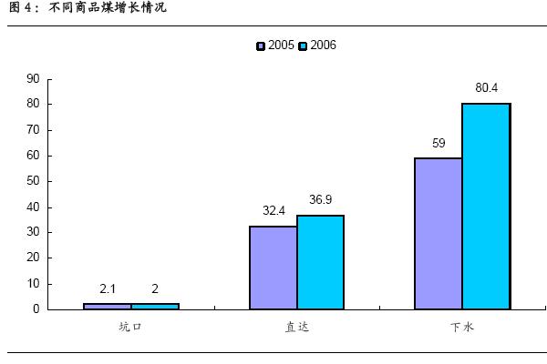 2006 年下水煤同比增長36.27%,直達煤同比增長13.9%,坑口煤同比增長