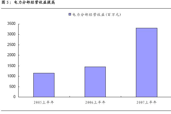 公司07 年上半年電力經(jīng)營收益大幅增長,給公司利潤的增長又增添一個引擎。