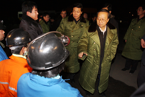 12月6日下午,國家安全生產(chǎn)監(jiān)督管理總局局長李毅中、省委書記張寶順先后到達(dá)山西洪洞煤礦事故現(xiàn)場。來到現(xiàn)場后,李毅中立即前去查看了井口,聽取事故情況匯報,并傳達(dá)國務(wù)院領(lǐng)導(dǎo)同志批示精神,研究部署搶救工作,充實加強現(xiàn)場指揮部領(lǐng)導(dǎo)力量,確定由山西省分管安全生產(chǎn)的副省長靳善忠牽頭負(fù)責(zé)現(xiàn)場的搶險救援工作。