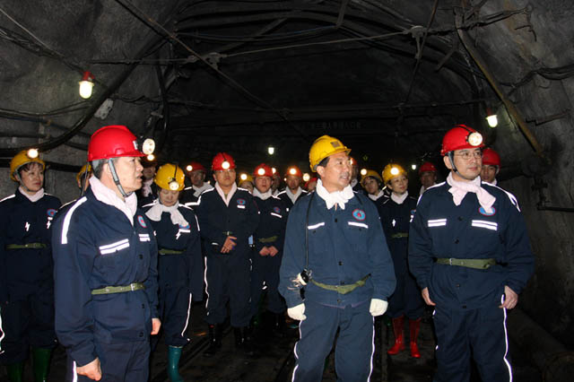 這天,國(guó)務(wù)院僑辦副主任任啟亮、國(guó)務(wù)院僑辦經(jīng)濟(jì)技術(shù)司司長(zhǎng)譚天星、淮北市副市長(zhǎng)方宗澤、濉溪常委、常務(wù)副縣長(zhǎng)張紅玉等一行30余人,一到臨渙煤電公司就在該公司董事長(zhǎng)、總經(jīng)理韓流、黨委書(shū)記楊軍、副總經(jīng)理、安監(jiān)長(zhǎng)周曙光的陪同下,深入百米井下,現(xiàn)場(chǎng)視察了礦井安全生產(chǎn)工作。在井下,國(guó)務(wù)院僑辦、市、縣領(lǐng)導(dǎo)一行30余人,參觀(guān)了臨渙煤電公司井下運(yùn)輸系統(tǒng)、行人大巷、主井提煤系統(tǒng)、井下生產(chǎn)調(diào)度中心、中央變電所、主排水泵房、副井提升系統(tǒng)等。視察過(guò)程中,臨渙煤電領(lǐng)導(dǎo)還向國(guó)務(wù)院僑辦、市、縣領(lǐng)導(dǎo),介紹了臨渙煤電公司礦井安全生產(chǎn)情況、井下生產(chǎn)環(huán)境和采區(qū)布置、質(zhì)量標(biāo)準(zhǔn)化創(chuàng)建、井下文明生產(chǎn)環(huán)境變化等情況。通過(guò)視察,國(guó)務(wù)院僑辦副主任任啟亮一行深有感觸地說(shuō):總認(rèn)為煤礦下井工人是一身汗水,滿(mǎn)臉煤灰,沒(méi)有想到臨渙煤電井下環(huán)境像花園,一路走來(lái),巷道燈光通明,壁畫(huà)連綿,花草搖曳,特別是井下中央變電所一塵不染,處處體現(xiàn)出人性化,職工的井下生產(chǎn)作業(yè)環(huán)境有了這么大的變化。井下生產(chǎn)調(diào)度也實(shí)現(xiàn)了計(jì)算機(jī)聯(lián)網(wǎng)控制,運(yùn)輸、提升等全部機(jī)械化、數(shù)字化控制,處處彰顯出現(xiàn)代化礦井的風(fēng)采。