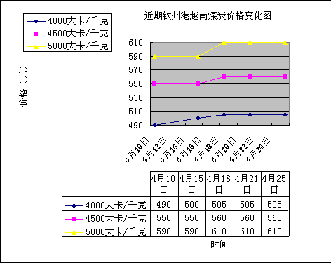 近期欽州港煤炭?jī)r(jià)格的上漲,主要是受越南政府煤炭政策的調(diào)整引起的,四月中旬之前受越南政府限制高卡無(wú)煙煤的出口,導(dǎo)致了當(dāng)時(shí)欽州港的煤炭主要以進(jìn)口4000大卡/ 千克。所以中旬的4000大卡/ 千克無(wú)煙煤有10-15元的上漲,而從15日之后漲價(jià)蔓延到了4500大卡/ 千克無(wú)煙煤和5000大卡/ 千克無(wú)煙煤,兩者的分別上漲10元和20元。之后保持穩(wěn)定,但是隨著從4月22日開(kāi)始越南煤炭出口關(guān)稅從10%提高到15%,在需求較為穩(wěn)定的情況下,欽州港后市的進(jìn)口無(wú)煙煤的價(jià)格會(huì)呈現(xiàn)上漲的態(tài)勢(shì)。