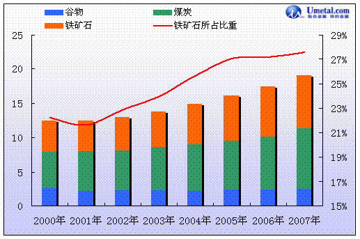 雖然2008年初干散貨海運(yùn)市場經(jīng)歷了雪崩式暴跌,但國際鐵礦石價(jià)格上漲預(yù)期,促使中國租家傾巢而出,推動(dòng)市場氣勢如宏的反彈飆升。預(yù)計(jì)2008年世界鐵礦石海運(yùn)貿(mào)易量將增加6500-7000萬噸,增長率9%,幾乎全部集中在中國,中國對(duì)進(jìn)口鐵礦石需求迅速增長已經(jīng)使世界干散貨海運(yùn)格局發(fā)生重要轉(zhuǎn)變,并成為海運(yùn)市場托盤的核心力量。