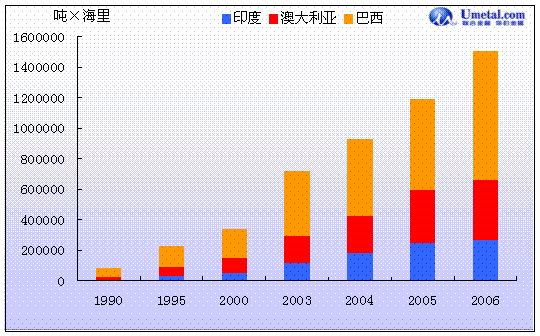 (圖3)鐵礦石出口運(yùn)距增長趨勢: