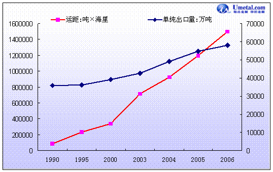 (圖4)鐵礦石出口量和運(yùn)距增長趨勢對(duì)比: