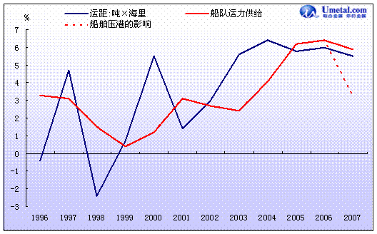 。▓D5)鐵礦石海運(yùn)的供需增長對(duì)比: