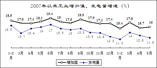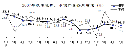 5月份,主要工業(yè)行業(yè)運(yùn)行態(tài)勢(shì)較好。能源生產(chǎn)供應(yīng)基本平穩(wěn),部分地區(qū)供需緊張狀況仍存在;冶金、有色、建材行業(yè)生產(chǎn)過(guò)快增長(zhǎng)情況得到遏制;機(jī)械、電子行業(yè)繼續(xù)較快增長(zhǎng);紡織、輕工等行業(yè)出口增幅有所回升。前5個(gè)月,行業(yè)效益水平出現(xiàn)分化。煤炭行業(yè)利潤(rùn)增長(zhǎng)97.8%;冶金、建材、醫(yī)藥行業(yè)利潤(rùn)增速超過(guò)40%;機(jī)械、電子和輕工行業(yè)利潤(rùn)增幅27.1%-36.9%;有色、紡織行業(yè)分別增長(zhǎng)9.2%和3.5%;電力、石化行業(yè)利潤(rùn)下降。