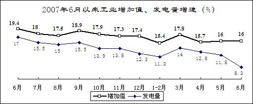 發(fā)電量增速減緩,效益明顯下降。上半年,全國(guó)發(fā)電量16803億千瓦時(shí),同比增長(zhǎng)12.9%,增速同比減緩3.1個(gè)百分點(diǎn);其中,火電、水電分別增長(zhǎng)11.7%和18.5%。區(qū)域性、季節(jié)性電力緊張?zhí)卣鞲用黠@。今年以來(lái),先后有20個(gè)省級(jí)電網(wǎng)出現(xiàn)拉限電;入夏以來(lái),南方電網(wǎng)供電持續(xù)緊張,河北南網(wǎng)、山西、遼寧、河南、重慶等地出現(xiàn)拉限電。預(yù)計(jì)夏季高峰期全國(guó)最大電力缺口1000萬(wàn)千瓦左右。前五個(gè)月,由于煤價(jià)上漲較多和因?yàn)?zāi)損失較重,電力行業(yè)實(shí)現(xiàn)利潤(rùn)173億元,下降70.8%,去年同期為增長(zhǎng)57.6%。其中,火電行業(yè)由去年同期凈盈利269億元轉(zhuǎn)為凈虧損22.9億元;水電、供電行業(yè)利潤(rùn)分別下降22.9%和52.6%,去年同期為增長(zhǎng)5.8%和86.3%。