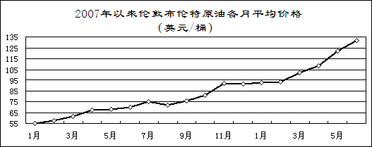 國(guó)際原油價(jià)格屢創(chuàng)歷史新高。紐約WTI原油價(jià)格先后突破110美元/桶、120美元/桶、130美元/桶、140美元/桶。6月份,布倫特原油平均價(jià)格132美元/桶,同比提高61.9美元/桶,漲幅為88.2%。由于成品油價(jià)格倒掛,煉油企業(yè)虧損嚴(yán)重,地方煉廠停產(chǎn)、減產(chǎn)面擴(kuò)大,部分地區(qū)成品油市場(chǎng)供應(yīng)較為緊張。為此,國(guó)家自6月20日起將汽油、柴油價(jià)格每噸提高1000元。前五個(gè)月,石化行業(yè)實(shí)現(xiàn)利潤(rùn)2237億元,同比下降0.4%,去年同期為增長(zhǎng)27.1%。其中,煉油行業(yè)由去年同期凈盈利310億元轉(zhuǎn)為凈虧損568億元。