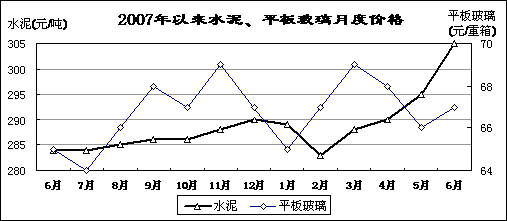 建材產(chǎn)品生產(chǎn)減速,水泥價(jià)格上漲較快。上半年,全國(guó)水泥產(chǎn)量64805萬(wàn)噸,同比增長(zhǎng)8.7%,增速同比減緩7.3個(gè)百分點(diǎn);平板玻璃產(chǎn)量27520萬(wàn)重箱,增長(zhǎng)12.2%,減緩5.6個(gè)百分點(diǎn)。水泥價(jià)格快速上漲,平板玻璃價(jià)格高位波動(dòng)。重點(diǎn)建材企業(yè)水泥平均出廠價(jià)6月份為305元/噸,比上月上漲10元/噸,同比上漲21元/噸;平板玻璃出廠價(jià)67元/重量箱,比上月上升1元/重量箱,同比上升2元/重量箱。前五個(gè)月,建材行業(yè)實(shí)現(xiàn)利潤(rùn)361億元,增長(zhǎng)43.6%。其中,水泥行業(yè)利潤(rùn)84.1億元,增長(zhǎng)65.4%;平板玻璃行業(yè)利潤(rùn)5.7億元,增長(zhǎng)25.4%。