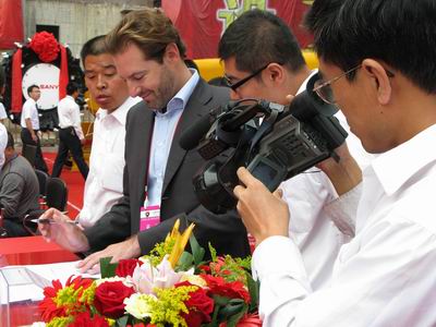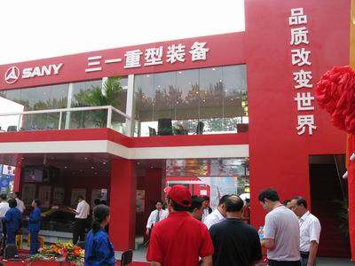 三一重型裝備有限公司雖然沒(méi)有占據(jù)最大的展臺(tái),也沒(méi)有擁有最好的展位,但無(wú)疑卻是展會(huì)現(xiàn)場(chǎng)的一個(gè)亮點(diǎn)。首先,鮮亮的紅色布景就吸引大部分觀眾的眼球;其次是展臺(tái)前面一排昂首向天的掘進(jìn)機(jī)氣勢(shì)磅礴;再次,公司邀請(qǐng)了一支專業(yè)的舞蹈隊(duì)表演,現(xiàn)場(chǎng)氣氛熱烈;最后是一支董事長(zhǎng)親自帶隊(duì)的近百人龐大服務(wù)團(tuán)隊(duì),表現(xiàn)十分活躍。