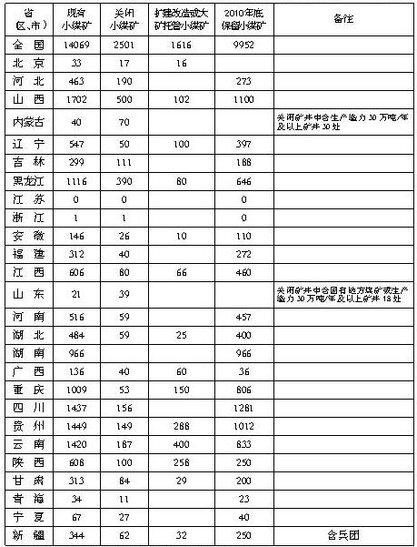 一、各地要在省級人民政府統(tǒng)一領(lǐng)導(dǎo)下,按照“提高門檻、嚴格準入,打擊非法、淘汰落后,資源整合、提高檔次,大礦托管、提升水平,明確責任、加強監(jiān)管”的總體要求,將本地區(qū)現(xiàn)有小煤礦通過淘汰落后關(guān)閉一批,擴能改造提高一批,大礦托管(包括兼并、收購、租賃)提升一批,到2010年底確保完成保留小煤礦數(shù)量目標。