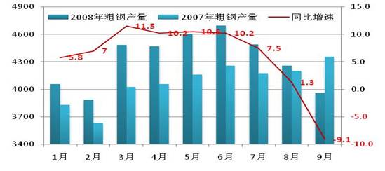 1、全球經(jīng)濟(jì)增長趨緩,國際、國內(nèi)兩個(gè)市場需求有所下降。國內(nèi)經(jīng)濟(jì)增長呈回落態(tài)勢,一季度GDP增長10.6%,二季度GDP增長10.1%,三季度GDP增長9.9%,經(jīng)濟(jì)增長速度逐季回落,已由偏熱轉(zhuǎn)向穩(wěn)定區(qū)間。雖然需求將有所回落,但預(yù)計(jì)資源供給數(shù)量減少得更快,1-9月累計(jì)產(chǎn)鋼3.91億噸,平均日產(chǎn)水平142.7萬噸,但9月份粗鋼3961.42萬噸,同比指數(shù)首次降為負(fù)數(shù),日產(chǎn)水平僅為132.05萬噸,以此測算后四季度粗鋼產(chǎn)量約為1.21億噸,預(yù)計(jì)全年產(chǎn)鋼5.12億噸,比上年增加2320萬噸,增長4.74%,比上年粗鋼產(chǎn)量增速降低了11個(gè)百分點(diǎn)?傮w國內(nèi)鋼鐵市場不會出現(xiàn)嚴(yán)重供大于求。