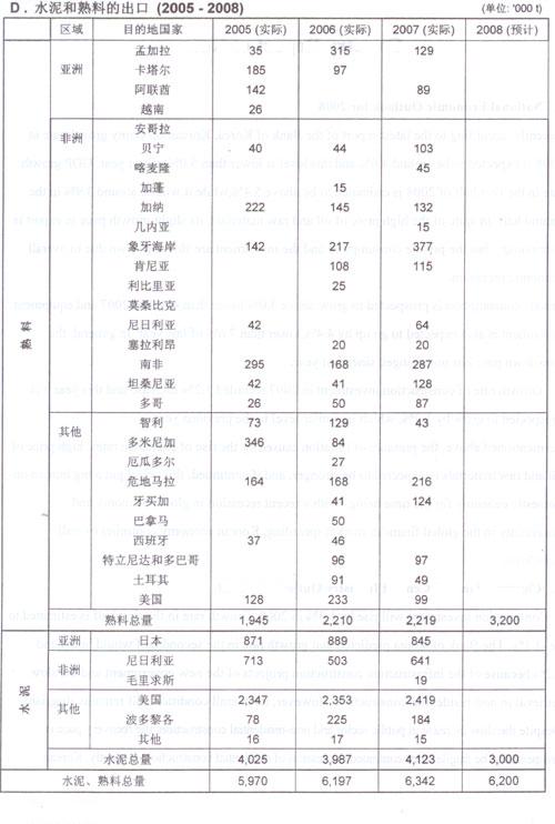 韓國水泥消費(fèi)量在2008年預(yù)計(jì)可以達(dá)到5100萬噸,只比去年增長大約0.4%。盡管住宅用建筑和住房市場持續(xù)低迷,公共基礎(chǔ)設(shè)施的建設(shè)項(xiàng)目和非住宅建筑的復(fù)蘇將對(duì)水泥的需求起到推動(dòng)作用。