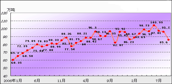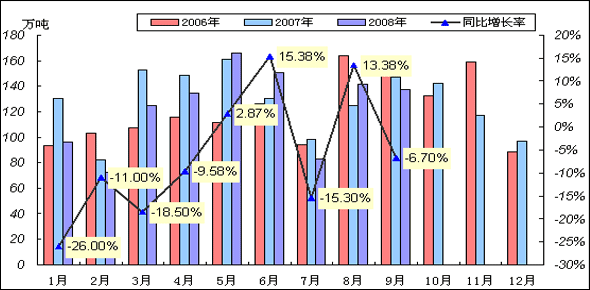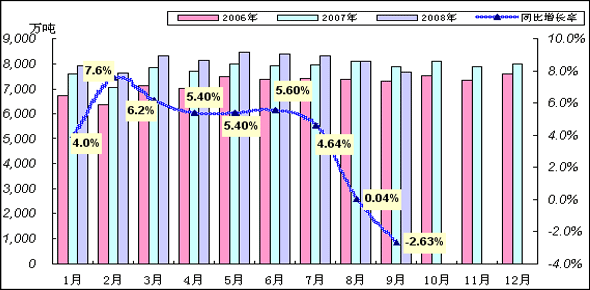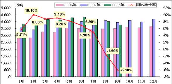 圖三 2006-2008年中國(guó)生鐵產(chǎn)量走勢(shì)圖