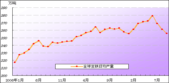 圖二 2006-2008年全球生鐵日均產(chǎn)量走勢(shì)圖