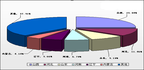 圖七 全國(guó)焦炭主產(chǎn)省份比例圖