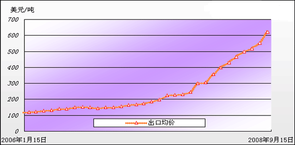 據(jù)海關(guān)總署發(fā)布的統(tǒng)計(jì)數(shù)據(jù)顯示,2008年8月份我國(guó)出口焦炭137.28萬(wàn)噸,較上月減少了3.5萬(wàn)噸,環(huán)比小幅下跌2.8%,同比下降6.7%;今年1-9月,我國(guó)累計(jì)出口焦炭1105萬(wàn)噸,同比減少了5.5%。1-9月份累計(jì)出口金額達(dá)52.09億美元,較去年的同期上升了142.3%。9月份,我國(guó)焦炭出口均價(jià)為621.32美元/噸,比8月份 554.05美元/噸的均價(jià)增加了67.27美元,環(huán)比增長(zhǎng)12.14%,繼續(xù)呈現(xiàn)慣性增長(zhǎng)態(tài)勢(shì)。參考圖八、圖九: