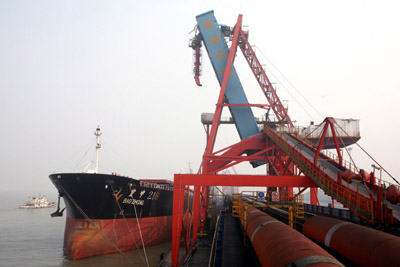 位于天津港南疆港區(qū)的神華天津煤炭碼頭第四條卸車線工程日前竣工投入使用。該工程的建成投產,將為神華天津煤炭碼頭每年新增卸車能力1000萬噸,使該碼頭年煤炭通過能力達到4500萬噸。圖為一艘運輸煤炭的貨船?吭谏袢A天津煤炭碼頭。