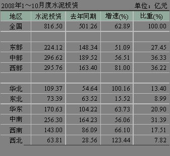 河北省受曹妃甸開發(fā)等因素拉動,水泥投資勢頭迅猛,1~10月份累積水泥投資額達(dá)到了50.76億元,同比增長190.70%,排名第三。