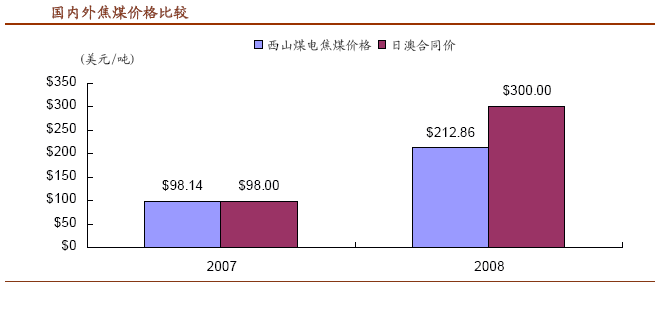 2007、2008年國內(nèi)外焦煤價(jià)格比較