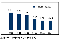 1~11月的全國的水泥產(chǎn)品積壓率延續(xù)近幾年連續(xù)下降趨勢,為4.53%,是自03年以來的最好水平。今年在市場需求減緩的情況下,很多地區(qū)主動采取限產(chǎn)保價措施,是產(chǎn)品積壓率持續(xù)走低的最主要原因。