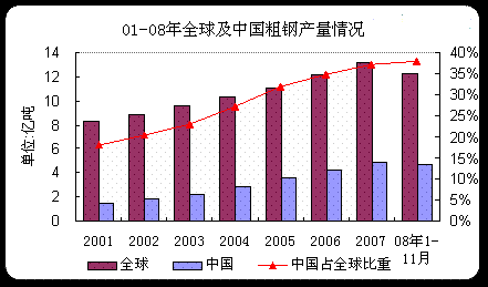 2009年,金融危機對實體經(jīng)濟影響的加深、加重,國際貨幣組織再次下調(diào)09年全球經(jīng)濟增長預期,預計全球GDP增速僅為2.2%,其中發(fā)達國家負增長0.3%,新興和發(fā)展中國家增速為5.1%,均明顯低于近幾年增速。經(jīng)濟低迷一向是貿(mào)易保護主義的催化劑,我國又是國際貿(mào)易保護主義的重災區(qū),在全球經(jīng)濟下行趨勢確定的大環(huán)境下,貿(mào)易保護主義呈“山雨欲來”之勢,很明顯,我們可以預見,我國鋼鐵在2009年遭遇貿(mào)易摩擦的風險無疑會加大,整體形勢不容樂觀。