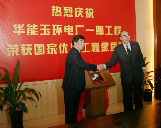 1月17日,中國電力企業(yè)聯(lián)合會理事長趙希正、中國華能集團(tuán)公司總經(jīng)理、黨組副書記曹培璽一行赴華能玉環(huán)電廠慰問,為玉環(huán)一期工程榮獲2008年國家優(yōu)質(zhì)工程金質(zhì)獎揭牌。