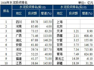 從前10大水泥投資大省看: