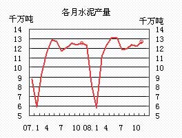 1-11月累計銷售水泥123347萬噸,月末庫存6299萬噸。水泥累計產銷率97.90%,比去年同期下降0.25個百分點。