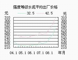 11月全國強度等級32.5水泥平均出廠價格每噸270.40元,比上月下降2.18元,比上年同月高38.48元。強度等級42.5水泥平均出廠價格每噸309.00元,比上月下降0.82元,比上年同月高44.88元。
