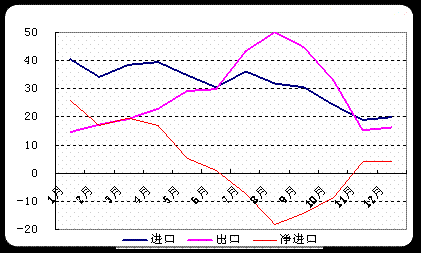 2008年冷軋板卷進(jìn)出口走勢(萬噸)