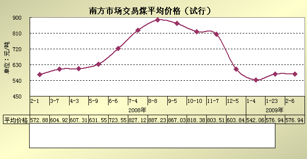 2008年南方煤炭市場交易煤平均價格統(tǒng)計