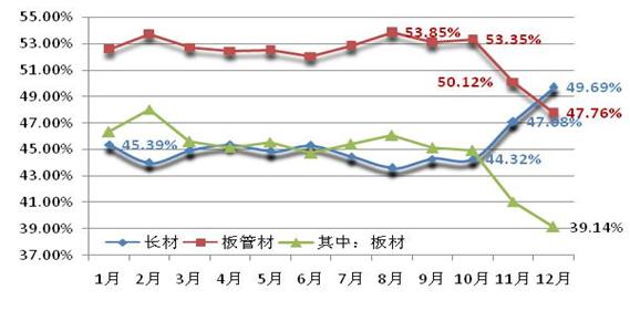 三、國內(nèi)鋼材品種結(jié)構(gòu)導(dǎo)致的價格差異日益顯現(xiàn),在建筑用鋼材分享國家更多投資的同時,板材需求、特別是熱卷卻還沒有真正的消費亮點出現(xiàn)。盡管受需求形勢的制約,板材產(chǎn)量呈持續(xù)降低的態(tài)勢,但從整體看,板材資源壓力大于長材。