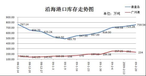 本周秦皇島煤炭庫存繼續(xù)上升,截至2月20日,秦皇島煤炭庫存上漲到760萬噸,與上周相比上漲了5.1%,已經(jīng)連續(xù)6周呈上漲態(tài)勢。