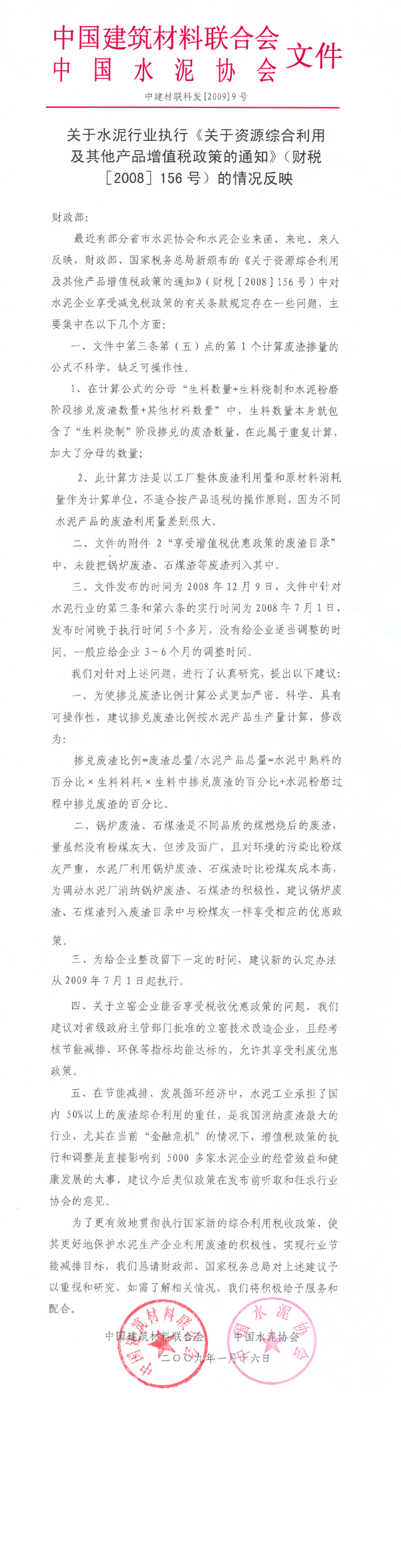 《關(guān)于資源綜合利用及其他產(chǎn)品增值稅政策的通知》向財(cái)政部進(jìn)行反映